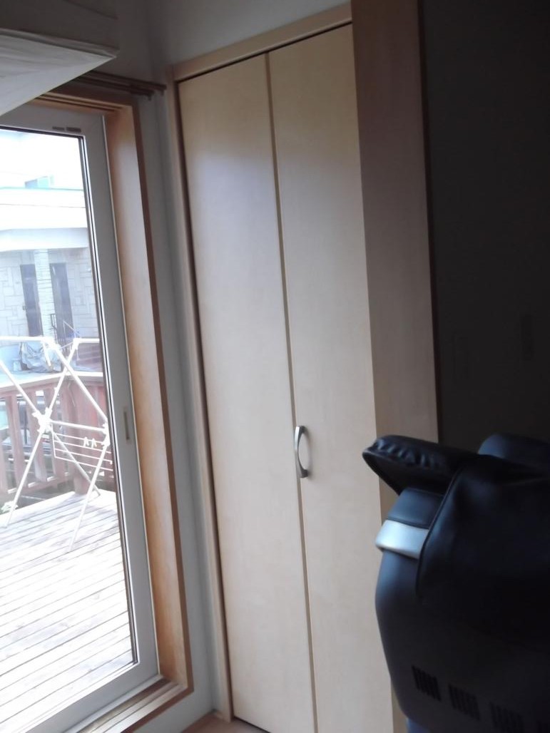 現在使われていないスペースに収納を造作しました 棚は高さ調整できるようにし 折戸を施工しましたまた 畳の表替えを行いました